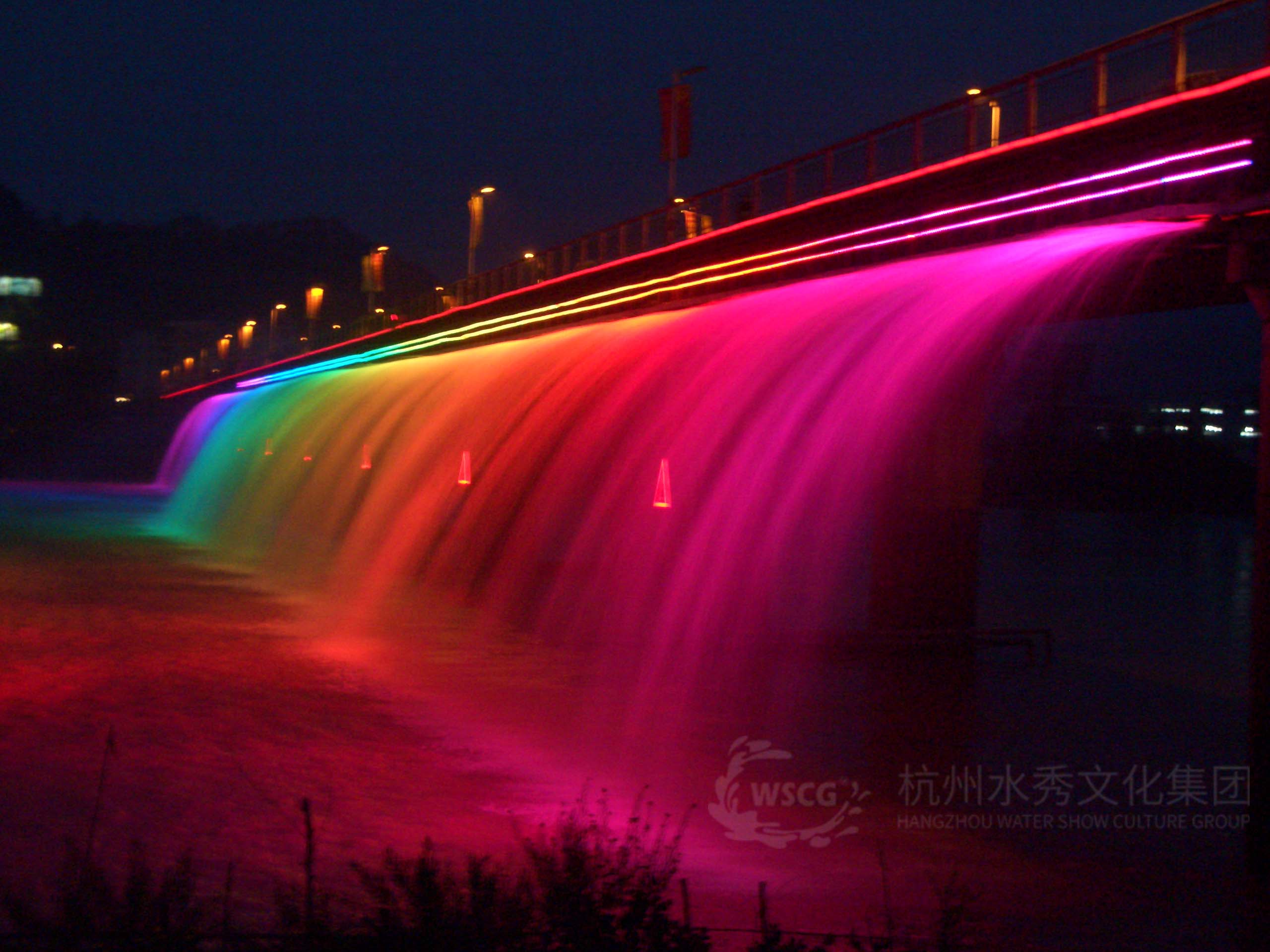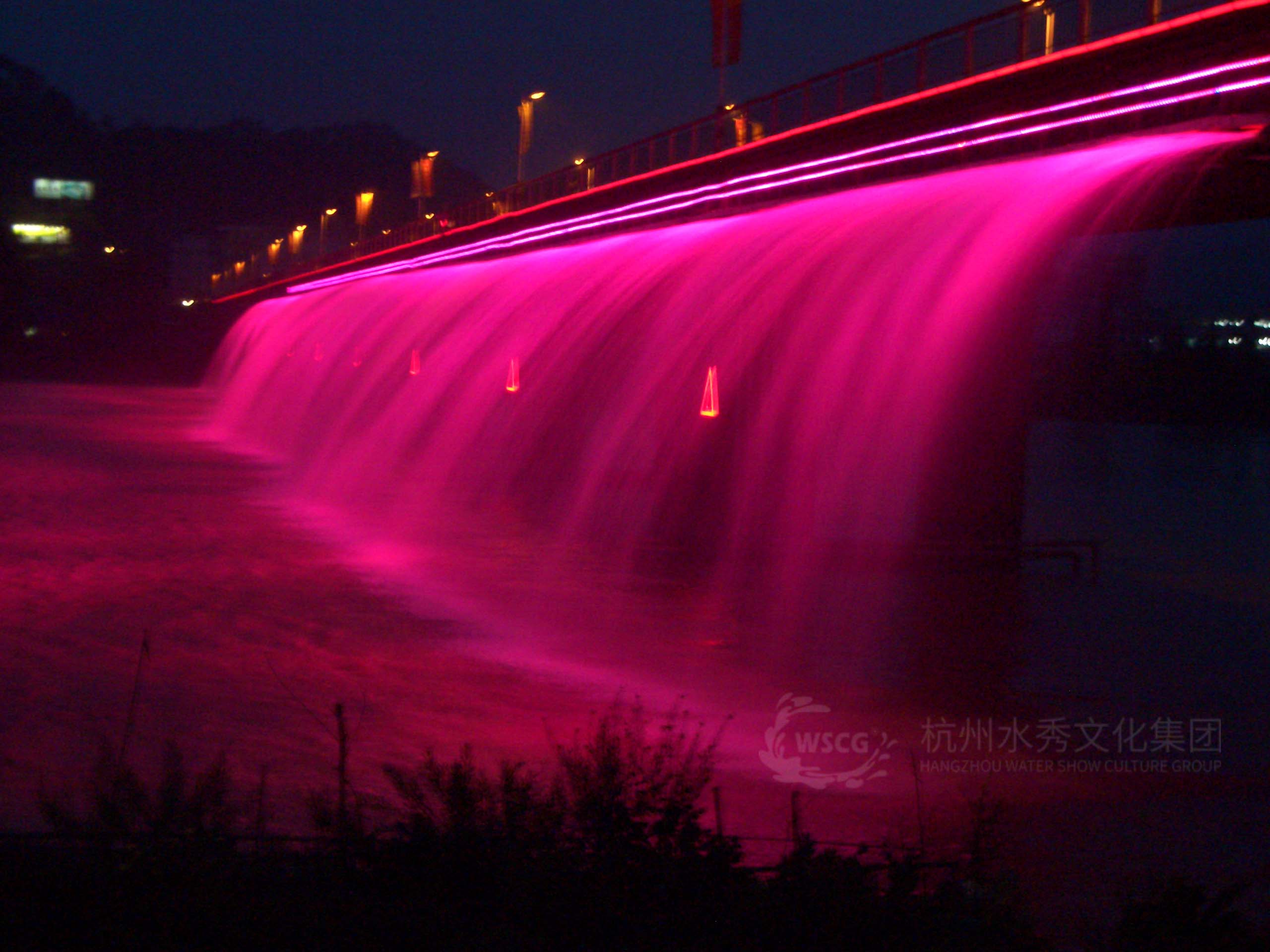 Fountain formations and colored lights are installed on both sides of the Lingjiang Bridge, applying new water feature technology. At night, it presents a rainbow-like dazzling and dreamy effect, creating a sense of passage, enhancing the bridge's landscape value, becoming a distinctive urban night landmark, and enriching the city's nightscape system.