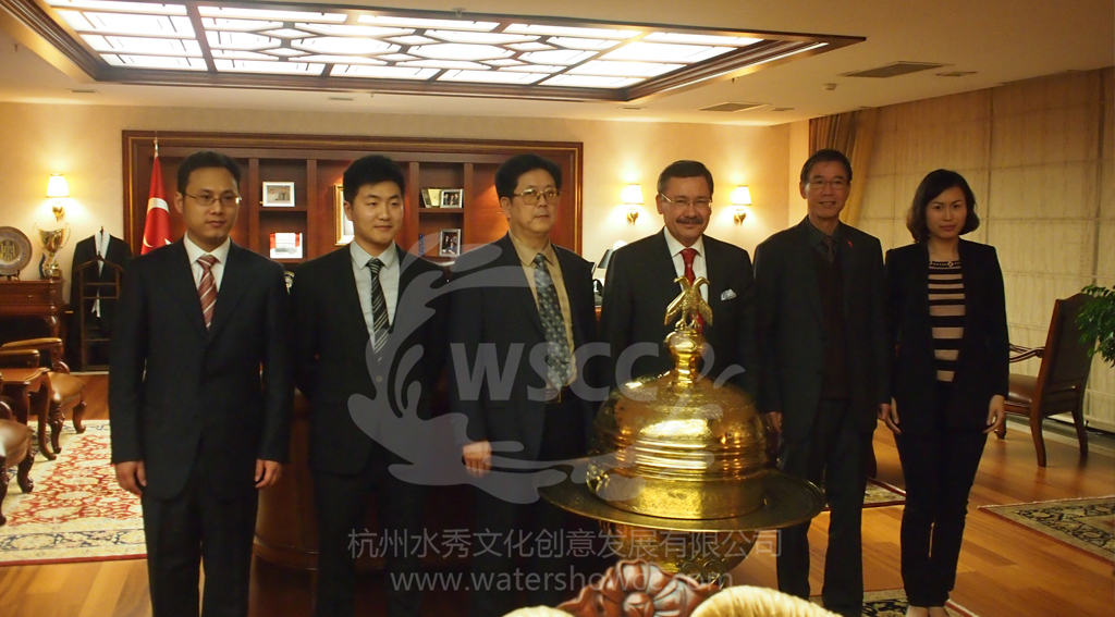 Zhou Yu, Chairman of the West Lake Fountain Company, and his party signed a successful contract with Mr. Mei Li, Mayor of Ankara, in Turkey.